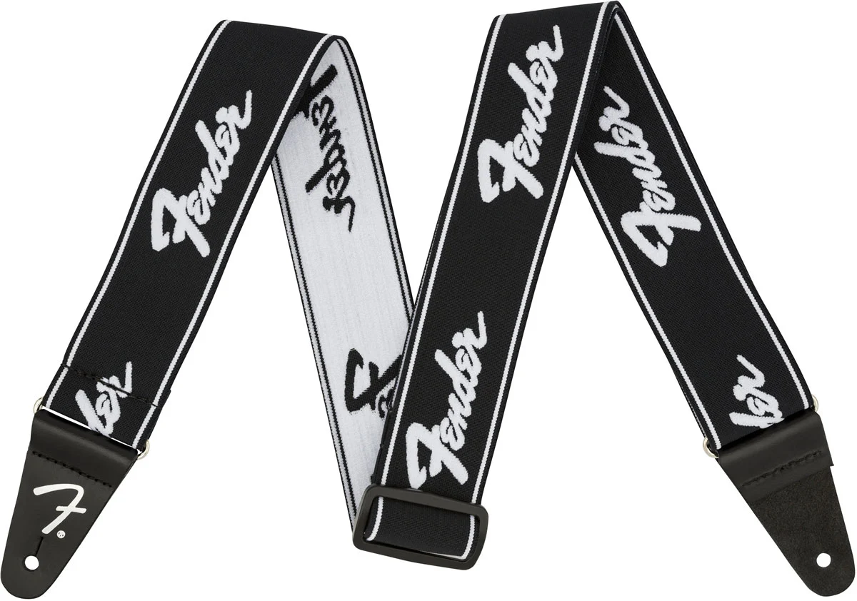 FENDER WEIGHLESS STRAP RUNNING LOGO B/W гитарный ремень, полиэстер, черный/белый