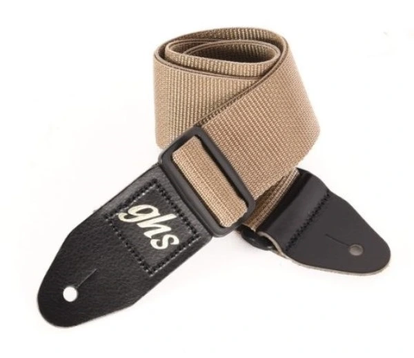 GHS A8BEIG Нейлоновый ремень для гитары с кожанными оконцовками, ширина - 5 см, регулируемая длина 81 см - 142 см, цвет -