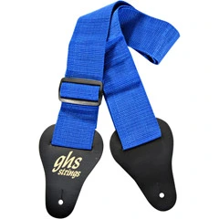 GHS A8BL Нейлоновый ремень для гитары с кожанными оконцовками, ширина - 5 см, регулируемая длина 81 см - 142 см, цвет - синий
