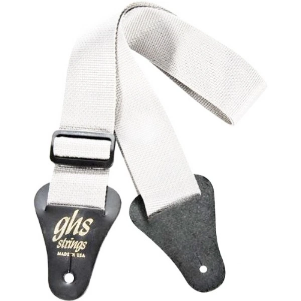 GHS A8W Нейлоновый ремень для гитары с кожанными оконцовками, ширина - 5 см, регулируемая длина 81 см - 142 см, цвет - белый