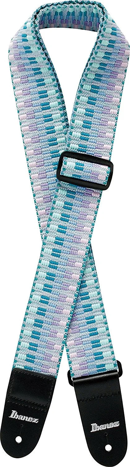 IBANEZ GSB50-C5 – фирменный аксессуар от знаменитого японского гитарного бренда, стильный гитарный ремень с оригинальным орнаментом. Ремень производится из прочного тканого материала с кожаными вставками на концах, он мягкий, надежный и удобный. Ширина ремня – 5 сантиметров. Длина регулируется с помощью пряжки в широком диапазоне от 93 сантиметров до 170 сантиметров, так что он подходит для большинства музыкантов. Модель выпускается в нескольких вариантах цветового исполнения. Представленный ремень – элегантного бирюзово-розового цвета с контрастными черными кожаными вставками, логотипом Ibanez белого цвета.