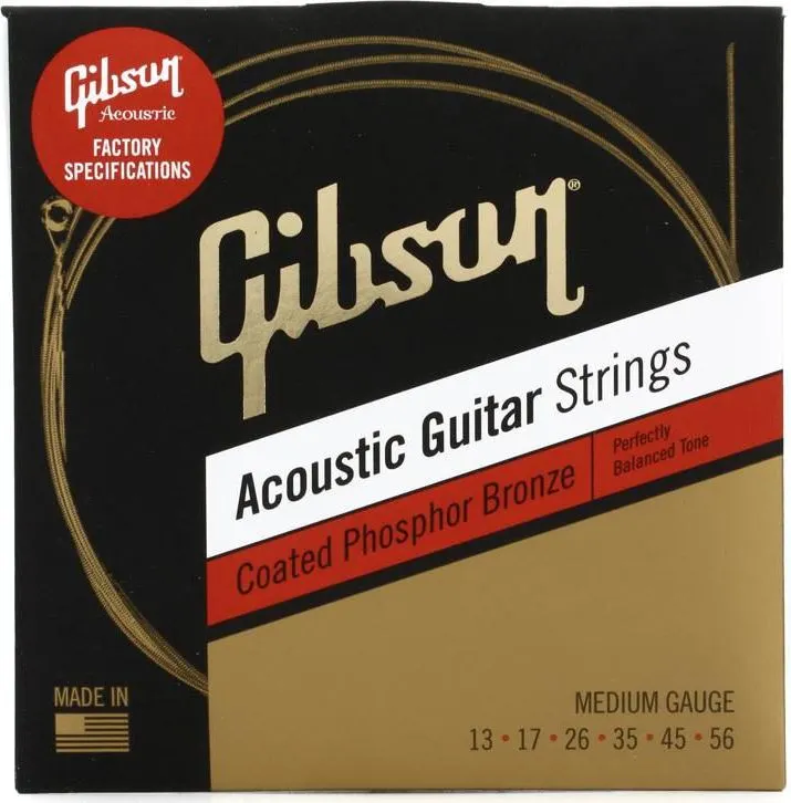 GIBSON SAG-CPB13 COATED PHOSPHOR BRONZE ACOUSTIC GUITAR STRINGS, MEDIUM струны для акустической гитары, .013-.056