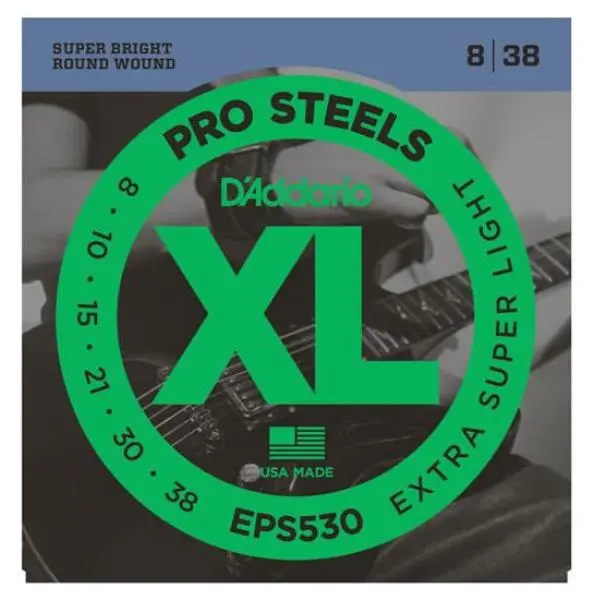 D'ADDARIO EPS530 PROSTEELS EXTRA-SUPER LIGHT 08-38 струны для электрогитары, сталь, 08-38
