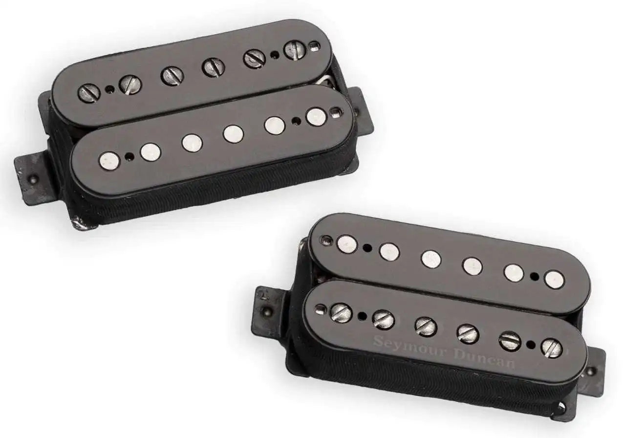 SEYMOUR DUNCAN Set, Nazgul/Sentient Blk - это комплект активных звукоснимателей для семиструнной электрогитары. Тип звукоснимателя - хамбакер. Цвет корпуса черный. Для тонкой подстройки есть семь регулируемых винтов-сердечников. Выходной уровень: neck - средний, bridge - высокий. Тип магнита- Alnico 5. Позиция установки - Bridge, Neck. Коммутация - четыре провода. Сопротивление: 7.8 kΩ (neck), 13.6 kΩ (bridge). Частота резонанса: 5.72 kHz (neck), 4.29 kHz (bridge).