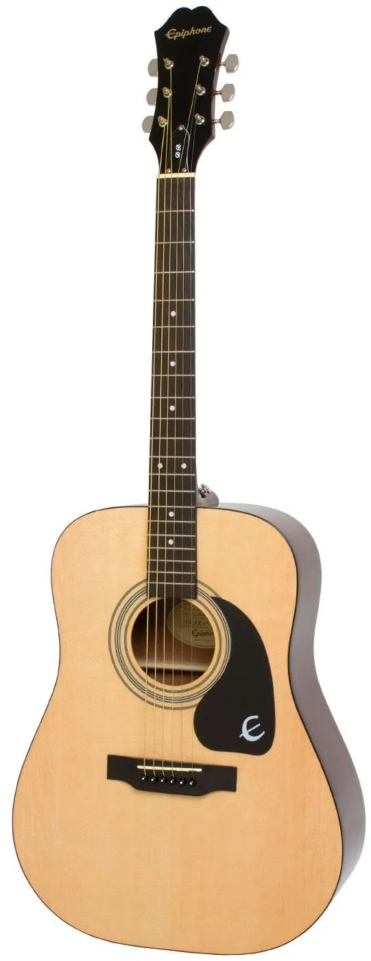 EPIPHONE DR-100 DREADOUGHT – настоящий бестселлер, самая популярная модель из акустических гитар, производимых Epiphone. Её высоко оценивают как профессиональные музыканты, так и начинающие. Гитара заключена в элегантный и удобный корпус классической формы дредноут – это универсальный инструмент, который прекрасно подойдёт для разных стилей музыки: рока, фолка, кантри и множества промежуточных направлений. DR-100 имеет очень красивый, глубокий, насыщенный звук. Гитара отлично звучит при любой громкости, при этом не заглушая голоса вокалиста. Верхняя дека выполнена из отборной еловой древесины. Нижняя дека и обечайка DR-100 – из красного дерева. Гриф профиля SlimTaper™ - вклеенный, из окоуме. Мензура – 25,5’’. Лады инкрустированы перламутровыми точками. Модель выпускается в трех вариантах цветового исполнения. Представленный инструмент – элегантного натурального цвета с контрастным чёрным пикрагдом и чёрной головой грифа, никелированной фурнитурой. На гитаре установлены струны D’Addario® толщиной .012 - .053.