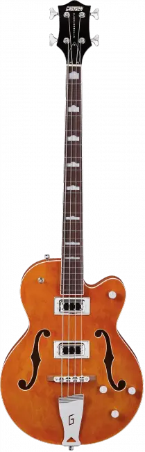 Это четырехструнная полуакустическая бас-гитара серии Gretsch Electromatic Collection, оснащенная двумя мощными хамбакерами. Инструмент предназначен под правую руку гитариста. Эта бас-гитара имеет оригинальное, узнаваемое звучание и шикарный дизайн. Также гитара отличительна оригинальным стилем деки с двумя резонаторами в форме буквы "f". Мензура бас-гитары составляет 34" (864 мм), цвет оранжевый.