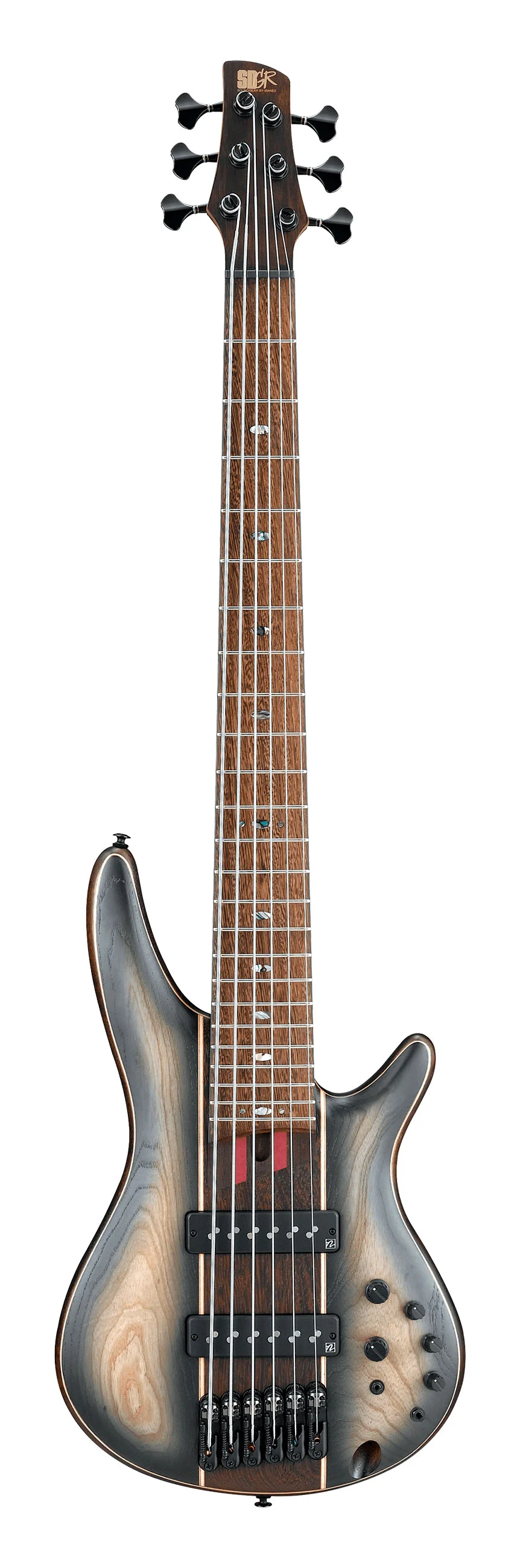 IBANEZ SR1346B-DWF - шестиструнная бас-гитара из линейки SR Premium 2020 года. Это инструмент уровня Hi-end, выпускаемый под девизом «Performance Beyond Expectation». При его создании применяются передовые технологии, тщательно отобранные материалы, лучшая электроника и фурнитура. SR1346B - бас в компактном обтекаемом корпусе из африканского красного дерева с красивым необычным топом из сочетания древесины панга панга и ясеня. Гриф Atlas-6 – из пяти кусков, сочетания термически обработанного клена и терминалии (Purpleheart), с титановым усилением KTS™. Такая конструкция обеспечивает отлично сбалансированную атаку и богатый сустейн, гриф прочный, устойчивый к изменениям влажности и температуры, надежно держит строй. Накладка – панга панга. Эта древесина обладает красивой фактурой, позволяет получить плотные низкие и средние частоты, с резкой четкой атакой на высоких частотах. На грифе 24 лада Medium с инкрустацией овалами из абалона. На бас-гитаре установлены пассивные звукосниматели Nordstrand™ Big Single, которые дают полнотелый, мощный, агрессивный звук, который при этом сохраняет чистоту, характерную для синглов. Настройка производится трехполосным эквалайзером собственной разработки Ibanez Custom 3-Band EQ. Модель SR1346B 2020 года представлена в эффектном цвете «Dual Shadow Burst» с матовой отделкой, черной фурнитурой. В комплекте с инструментом поставляется фирменный мягкий чехол.