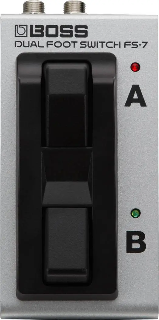 BOSS FS-7 - это компактный двойной футсвитч для управления эффектами. Кроме управления функциями настроек педалей эффектов контроллер может работать с совместимыми гитарными усилителями для переключения каналов и прочими устройствами. Два переключателя расположены рядом, это дает возможность существенно сохранить место в без того перегруженном педалборде. Каждый из переключателей A/B имеет два режима работы. На внешней лицевой панели есть два гнезда 6,3 мм., одно из которых поддерживает стереокоммутацию, гнездо подключения питания. Корпус педали контроллера стальной. Питание осуществляется от адаптера 9В.