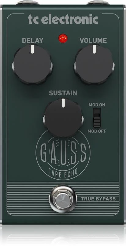TC ELECTRONIC GAUSS TAPE ECHO - гитарная педаль, эффект эхо. Эта модель отличается потрясающей отзывчивостью и точно воспроизводит каждый мельчайший нюанс звучания эхо-машин прошлого. С использованием винтажной педали GAUSS TAPE ECHO стало легко получить их теплый, насыщенный звук, ставший легендарным. Настройка характеристик получаемого эхо производится в реальном времени, а переключатель режимов позволяет оперативно включать чистое звучание или добавлять эхо лёгкую, теплую, натуральную модуляцию эхо-машины. GAUSS TAPE ECHO позволяет получить воспроизводить эхо любого типа, получать характерный теплый дилей классического рока или олд-скульный, как в рокабилли 50-х. Управление педалью осуществляется с помощью трех регуляторов. Sustain регулирует продолжительность сустейна, Time определяет время задержки, Volume настраивает громкость выходного сигнала. Педаль заключена в прочный цельнометаллический корпус «Built-like-a-tank» темно-зеленого цвета, способный выдержать не самое бережное обращение на концертах и в турах. Удобна для использования в педалборде. Электропитание – от батарейки «Крона» 9 вольт или сетевого адаптера PSU-SB (приобретается отдельно).