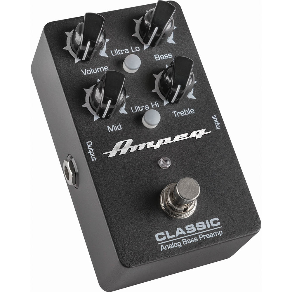 Напольная педаль, предусилитель для бас-гитары, который способен вывести звучание баса на совершенно новый уровень. Американский бренд Ampeg известен своими аналоговыми устройствами, усилителями и педалями, которые используют профессионалы по всему миру. Предусилитель представляет широкий спектр настройки звучания, включая трехполосный эквалайзер и две кнопки оптимизации ультра-высоких и низких частот.