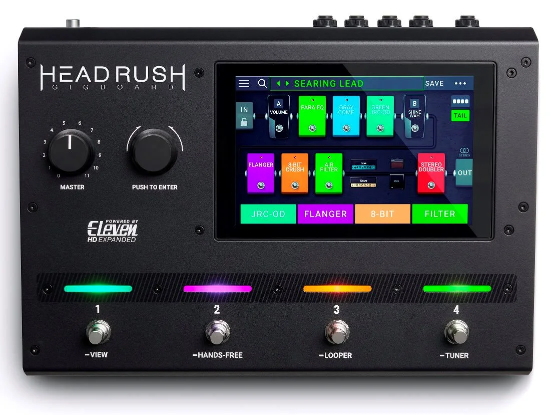 HEADRUSH GIGBOARD - это профессиональный напольный процессор эффектов. Процессор имеет четырехядерный процессор и эксклюзивное ПО ElevenHD Expaned DSP. ГИтаристам доступен богатый выбор из 34 моделей усилителей, 15 моделей кабинетов, 10 микрофонов и 48 видов эффектов - 6 овердрайв/дисторшн, 5 эквалайзеров, 7 модуляций, 7 эффектов реверб/дилэй, 5 режимов работы педали экспрессии.