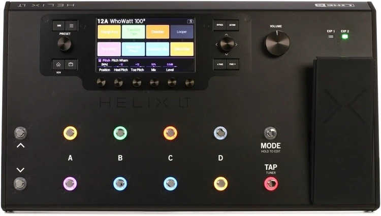 LINE 6 HELIX LT – многофункциональный процессор эффектов, компактная версия флагманской модели Helix от американского производителя Line 6, которая сохранила все необходимые каждому гитаристу функции, при этом заключена в уменьшенный и облегченный корпус. В данной модели используется инновационная технология моделирования звука и высококачественный двойной процессор DSP, который даёт возможность не просто воспроизвести звучание разных моделей знаменитых ламповых усилителей, но и точно передать их динамические характеристики. Модель Helix LT способна эмулировать звучания 62 усилителей и 37 кабинетов, а также 16 видов микрофонов. Доступны 102 различных эффекта. Модель имеет эргономичный и удобный интерфейс, оснащена цветным жидкокристаллическим экраном для наглядности отображения настроек. Предусмотрено двенадцать подсвечиваемых педальных переключателей с чувствительностью к силе нажатия. Интерфейс USB позволяет работать со звуком в качестве 24 бит/96 кГц, также имеется интерфейс MIDI для работы с различными внешними устройствами. Процессор заключен в прочный стальной корпус с покрытием черного цвета.