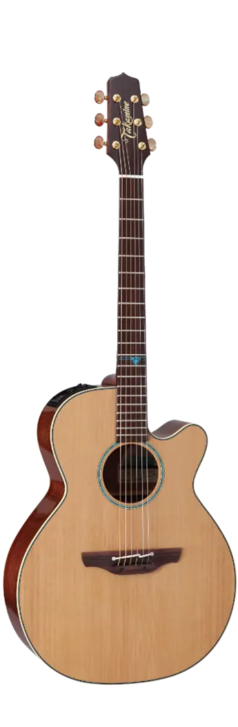 На модель TSF40C прежде всего стоит обратить внимание, тем, кому под душе открытое звучание больших концертных корпусов. Форма деки NEX - фирменная технология компании Takamine, являющаяся развитием стандартной формы джамбо. В отличии от акцентирующего на басовой составляющей звука дредноута, NEX звучит более открыто. Гитара выполнена в наиболее акустически подходящем форме NEX варианте - массив из кедра, задняя дека, обечайка и гриф из махагони.