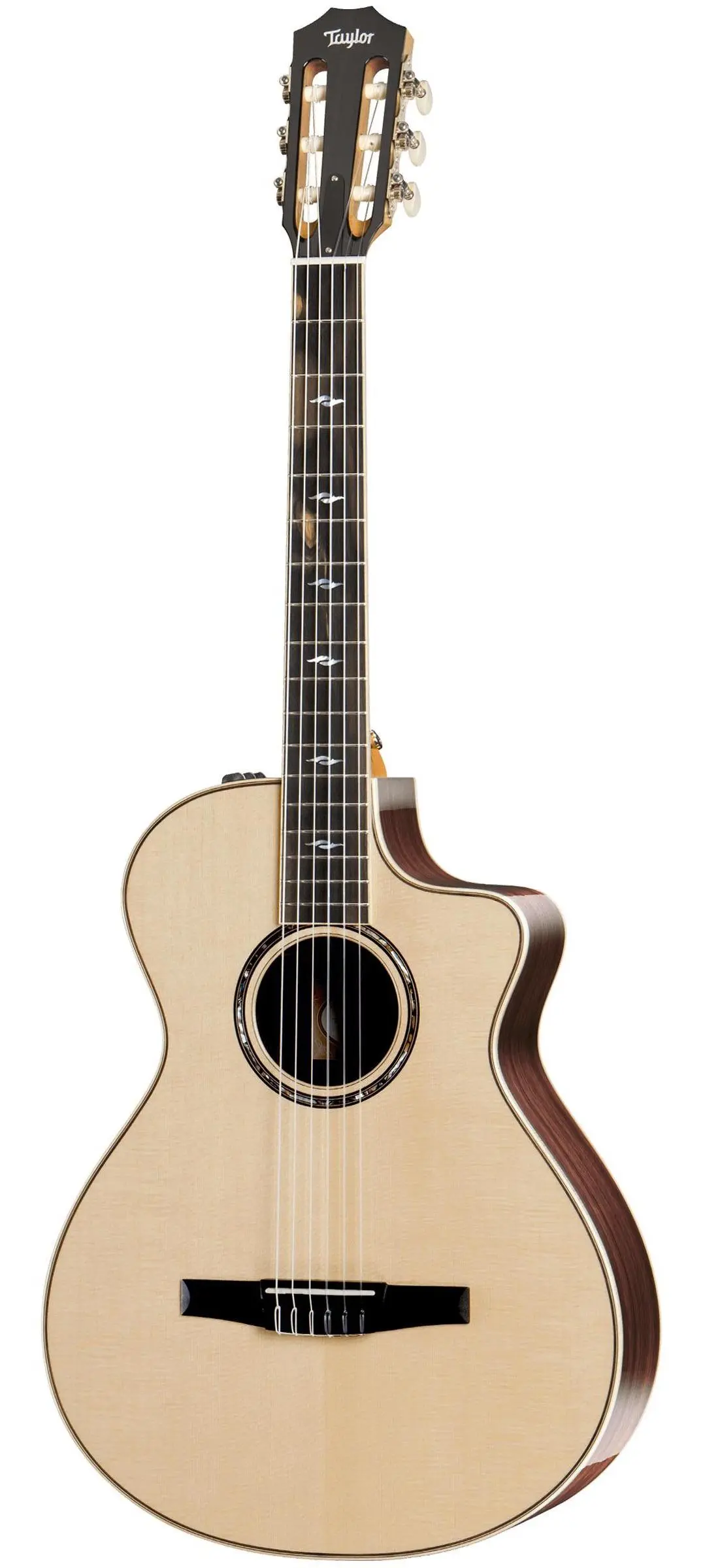 TAYLOR 812ce-N 800 Series Nylon - это шестиструнная электроакустическая классическая гитара. Эта гитара имеет прекрасное звучание и изысканный стиль, который присущ всем инструментам TAYLOR. Гитара относится к линейке гитар 800 Series. Этот инструмент прекрасно подойдет для игры пальцами - "фингер-стайл", для исполнения музыки самых разных жанров. Гитара выдает приятный, сбалансированный тон, богатый глубокими обертонами. Дека Grand Concert (19 1/2") обладает хорошим акустическим резонансом, который прекрасно звучит при живом исполнении. Цвет гитары натуральной.