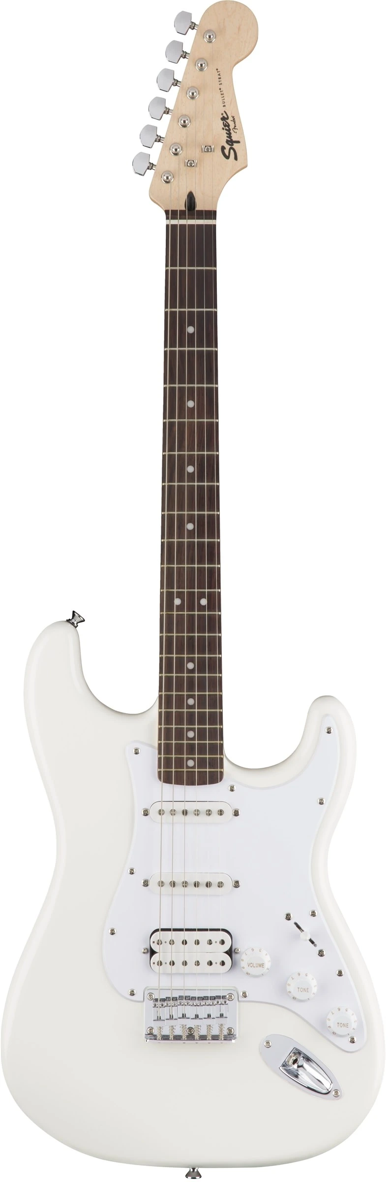 FENDER SQUIER BULLET STRAT HT HSS AWT – бюджетная модель от знаменитого американского гитарного бренда, простая, практичная и удобная гитара, разработанная для начинающих гитаристов и обучающихся игре на инструменте. Электрогитара обладает всеми характерными чертами, которые сделали Стратокастер одной из самых популярных и любимых моделей в мире. Корпус классической узнаваемой формы выполнен из липы с полиуретановым покрытием. Кленовый гриф имеет удобный профиль «С». Особенность обновленной модели SQUIER BULLET STRAT HT HSS – накладка на гриф из терминалии с инкрустацией перламутровыми точками. На грифе 21 лад Medium Jumbo. Еще одна отличительная черта инструмента: гитара оснащена двумя синглами у грифа и в средней позиции плюс хамбакером у бриджа, с пятипозиционным переключателем и фиксированным бриджем, который обеспечивает стабильность строя. Это отличный выбор для Вашей первой электрогитары, в каком бы музыкальном стиле Вы ни хотели начать играть. Модель представлена в элегантном белом цвете с однослойным белым пикгардом.