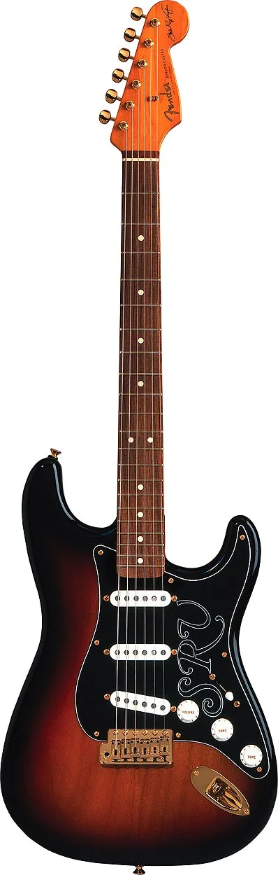 Stevie Ray Vaughan Stratocaster – великолепная именная гитара знаменитого блюзового гитариста Stevie Ray Vaughan, выполненная из ольхи. Гриф гитары – кленовый, с индивидуальной профилировкой грифа профиля "овал" и накладкой из пао-ферро с радиусом 305 мм (12”). Три сингловых датчика Texas Special Strat, пикград с именной гравировкой. Тремоло – винтажное, левостороннее, с золотистым покрытием, как и на личной гитаре Стива с именем "Number One". Корпус из отборной ольхи окрашен в классический цвет “трехцветный санберст”.
