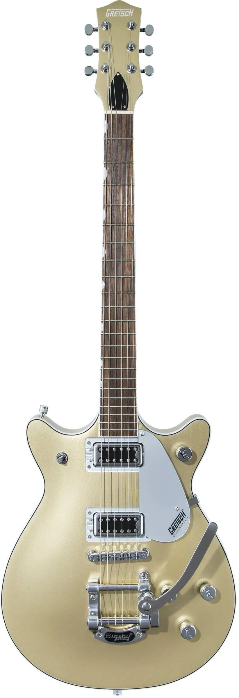 GRETSCH GUITARS G5232T EMTC DBL JET FT CSG - это шестиструнная электрогитара. Инструмент под правую руку гитариста. Этот инструмент имеет оригинальное, узнаваемое звучание гитар Gretsch, которое нельзя спутать с другими марками гитар. Также гитара отличительна оригинальным стилем деки и головы грифа. Инструмент оборудован грифом из красного дерева с накладкой из ореха. Мензура электрогитары составляет 625 мм, цвет гитары золотистый. Ширина верхнего порожка 42,9 мм.