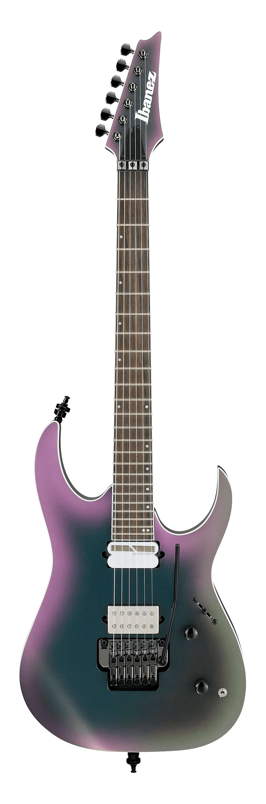 IBANEZ RG60ALS-BAM – шестиструнная электрогитара из модельного ряда RG Axion Label 2020 года. Эта серия была создана для настоящего металла, в гитарах Axion Label используются самые современные разработки в области звука. Модель RG60ALS отличается необычным дизайном, она представлена в эффектном цвете «Black Aurora Burst» с матовой отделкой, головой грифа в цвет корпуса, черной фурнитурой. Корпус гитары выполнен из ньятона. Гриф Nitro Wizard – из пяти кусков, сочетания панга панга/орех. Особенность RG60ALS – увеличенная мензура 26,5’’ (673 миллиметра). На грифе 24 лада джамбо с инкрустацией смещенными к верхней (нижние лады) и нижней части (верхние лады) белыми точками, продублированными люминесцентными точками на торце. Накладка из черного дерева позволяет получить впечатляющий сустейн, дает плотные низкие и средние частоты, характерную атаку на высоких частотах. За звук отвечает пассивный хамбакер DiMarzio® Fusion Edge у бриджа и SUSTAINIAC® Driver у грифа. Бридж – тремоло Edge Zero II – низкопрофильный, очень удобный, он также обеспечивает максимальную стабильность строя.