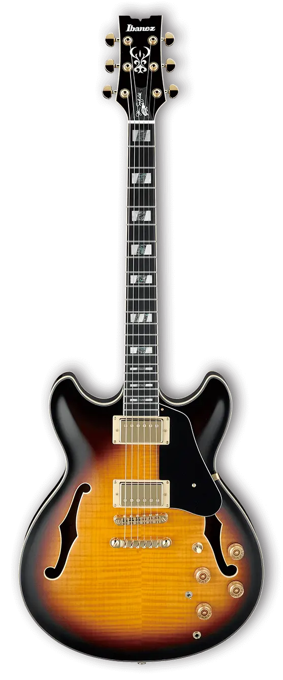 IBANEZ JSM10-VYS – шестиструнная гитара с полым корпусом от знаменитого японского производителя. Это инструмент, созданный Ibanez в сотрудничестве с джазовым гитаристом Джоном Скофилдом. Корпус гитары выполнен из огненного клена. Гриф – из трех кусков красного дерева. Мензура – 628 мм. Накладка на гриф – из черного дерева с оригинальной инкрустацией прямоугольниками акрил/абалон. Радиус накладки – 305 мм. Верхний порожек – из кости. Бридж – ART-1, фиксированный, со струнодержателем Quik Change III. Звукосниматели – два пассивных хамбакера Super 58 с магнитами Alnico, которые обеспечивают ровный гладкий звук, отличную динамику и четкое звучание с характерными блюзовыми нотками. Переключатель звукоснимателей – трехпозиционный, а для некового звукоснимателя также предусмотрен переключатель Tri-Sound. Для настройки звука предусмотрены два регулятора громкости и два регулятора тембра. Модель представлена в элегантном цвете Vintage Yellow Sunburst. Фурнитура – золотистая. На инструменте установлены струны толщиной .010 - .052.