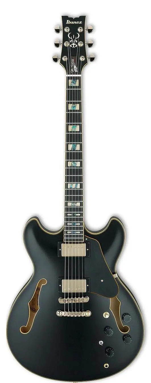 IBANEZ JSM20-BKL – шестиструнная электрогитара с полым корпусом от знаменитого японского производителя. Это инструмент, созданный Ibanez в сотрудничестве с джазовым гитаристом Джоном Скофилдом. Корпус гитары выполнен из клена. Гриф JSM – из трёх кусков, сочетания красного дерева и клёна. Мензура – 628 миллиметров. Накладка на гриф – из черного дерева с оригинальной состаренной инкрустацией прямоугольниками акрил/абалон. Радиус – 305 мм. Верхний порожек – из натуральной кости. Фиксированный бридж ART-1 со струнодержателем Quik Change III позволяет оптимально передать вибрацию струн и отлично держит строй, даёт продолжительный сустейн. С таким струнодержателем менять струны быстро и легко. Звукосниматели – два пассивных хамбакера Super 58 с магнитами Alnico, которые обеспечивают ровный гладкий звук, отличную динамику и четкое звучание с характерными блюзовыми нотками. Переключатель звукоснимателей – трехпозиционный. Для настройки звука предусмотрены два регулятора громкости и два регулятора тембра, плюс переключатель Tri-Sound для некового звукоснимателя. Модель представлена в элегантном полуматовом черном цвете. Фурнитура – золотистая. В комплекте поставляется фирменный жёсткий кейс.