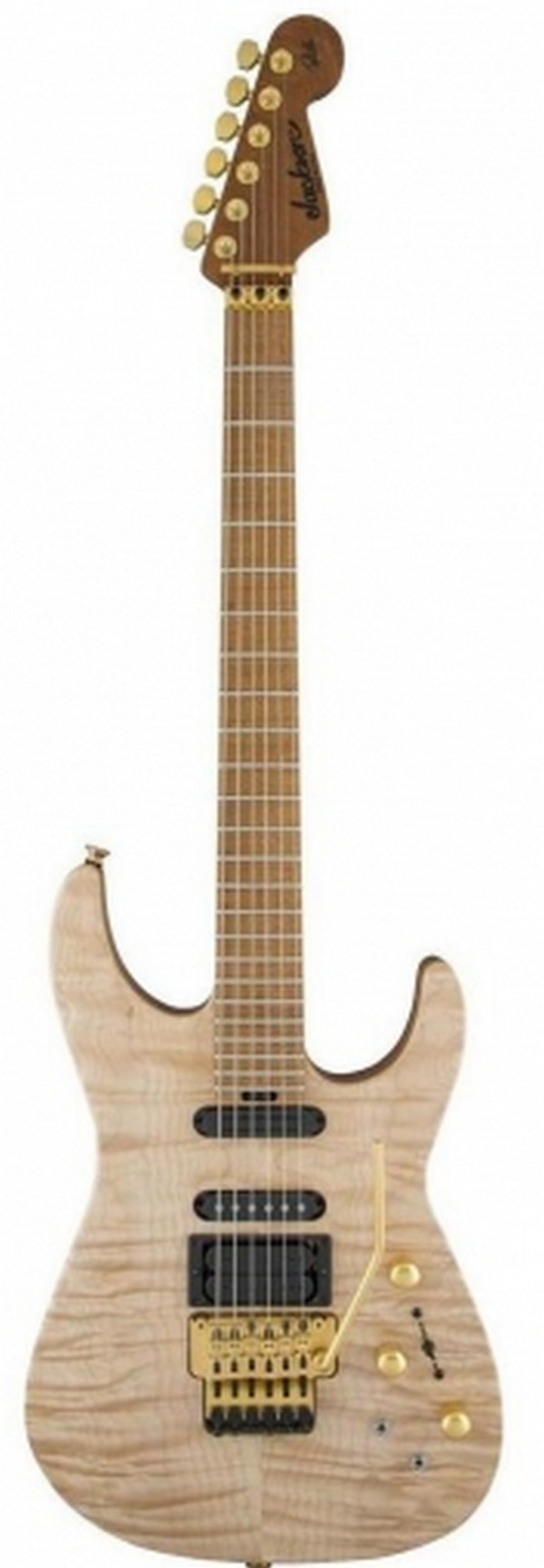 За звучание гитары отвечают три мощных звукоснимателя (HH, Sustainiac), модели PC-1 Sustainer Driver (neck), DiMarzio HS-2 хамбакер (centre) и DiMarzio DP152F хамбакер (bridge). Для звукоснимателей-сустейнеров есть два мини переключателя на деке гитары. Мензура гитары составляет 648 мм. Бридж гитары подвижный - Original Floyd Rose Tremolo. Электрогитары Jackson известны и востребованы среди гитаристов играющих рок-музыку самых разных направлений. Это прекрасный инструмент, обладающим своим стилем, звучанием и богатыми возможностями для творчества. Цвет гитары натуральный.