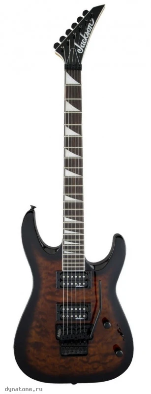 JACKSON JS32Q DKA AH FB – шестиструнная электрогитара, модель из бюджетной линейки JS Series. Dinky™ Arch Top JS32Q – это классический звук, узнаваемый дизайн и удобство при игре, характерные для инструментов Jackson, доступные по доступной цене. Гитара заключена в стильный корпус эргономичной формы Dinky™ из тополя с красивым топом из волнистого клёна. Гриф – из цельного куска клёна, привинченный, с графитовым усилением, обеспечивающим максимальную стабильность. Отделка грифа – матовая. Накладка – из амаранта, переменного радиуса 12-16 дюймов. На грифе 24 лада джамбо, инкрустированных перламутровыми «акульими плавниками». Голова грифа - Jackson® Pointed (6 в ряд). Мощный и при этом чистый звук инструмента формируют два хамбакера собственного производства Jackson® с высоким выходным уровнем. Переключатель – 3-позиционный, регуляторы – громкость и тембр. Тремоло Floyd Rose® предоставляет широкие возможности для экспрессивной игры, дает отличную динамику и продолжительный сустейн. Представленная гитара – элегантного цвета «тёмный санбёрст» с глянцевой отделкой, полностью черной фурнитурой и черной головой грифа.