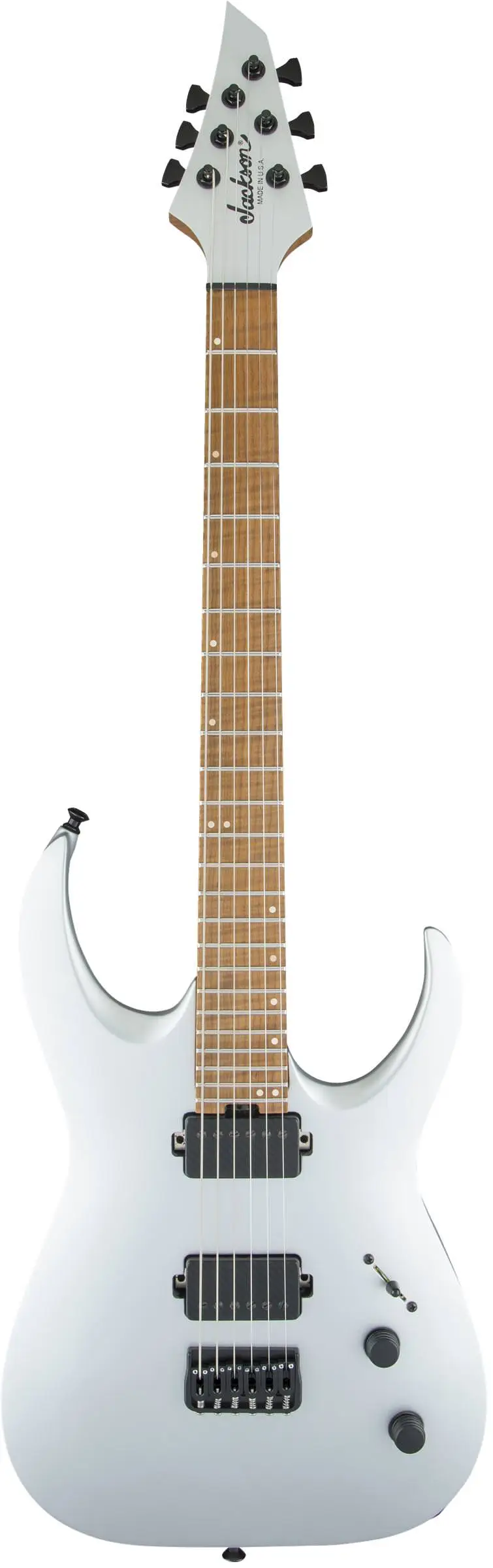 За звучание гитары отвечают два мощных звукоснимателя (HH), модели Bare Knuckle Ragnarok (х2). Звукосниматели установлены в бридже и около грифа (нек-положение). Мензура гитары составляет 25,5" (648 мм). Бридж гитары фиксированный - Hipshot 6 - Fixed .175. Электрогитары Jackson известны и востребованы среди гитаристов играющих рок-музыку самых разных направлений. Это прекрасный инструмент, обладающим своим стилем, звучанием и богатыми возможностями для творчества. Цвет гитары серебристый. Установлен комплект струн D'Addario EXL117 (.011-.056 Gauges).