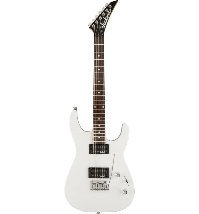 JACKSON JS11 DK – шестиструнная электрогитара, модель из бюджетной линейки JS Series. Это отличный вариант для молодых музыкантов получить классический джексоновский звук и внешний вид по демократичной цене. Корпус Dinky JS11 выполнен из древесины тополя. Гриф – из клёна, привинченный, с графитовым усилением, обеспечивающим максимальную стабильность. Отличительная черта представленной модели - накладка из амаранта переменного радиуса 12 дюймов, которая отлично подходит как для игры риффов, так и для соло. На грифе 22 лада джамбо, инкрустированных перламутровыми точками. Голова грифа - Jackson® Pointed (шесть в ряд). Четкий, чистый звук инструмента, при этом достаточно плотный и мощный, формируют два хамбакера собственного производства Jackson® High-Output с керамическими магнитами. Настройка звука производится трехпозиционным переключателем, регуляторами громкости и тембра. Представленная гитара – элегантного белого цвета с контрастной черной головой грифа и черной фурнитурой.