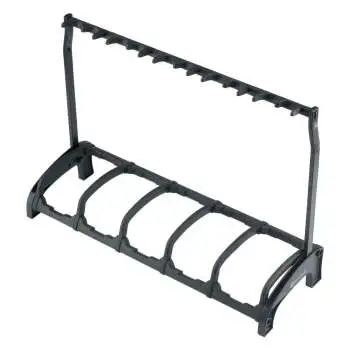 K&M 17515-016-55 Guardian 5 - это универсальная складная напольная стойка для пяти гитар. Сценические стойки для гитар востребованы среди практикующих и профессиональных музыкантов благодаря простоте использования и функциональности. На стойку можно устанавливать самые разные типы электрогитар, акустические или бас-гитары. Для бережного удерживания корпуса и грифа гитар стойка оборудована мягкими подушечками, изготовленными из высококачественного термопластичного эластомера с амортизирующими характеристиками. Благодаря такой конструкции музыкантам не нужно беспокоиться о случайном повреждении своего инструмента при установке. Универсальная стойка для пяти гитар K&M 17515-016-55 Guardian 5 станет хорошим приобретением для частного и профессионального использования. Опционально стойка комплектуется колёсами (17510).