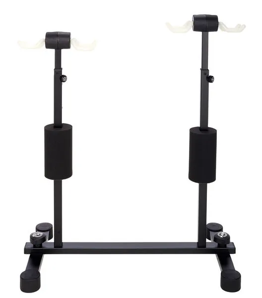 K&M 17605-000-00 - универсальная напольная стойка для четырёх гитар от известного немецкого производителя. Эта стойка идеально подойдёт для размещения четырёх электрогитар, акустических гитар или бас-гитар на сцене, она также удобна для использования в студиях звукозаписи, на репетиционной базе или дома. Эргономичная конструкция стойки позволяет устанавливать инструменты нестандартных форм и размеров, гитары формы V или Х. На стойку можно поставить гитару с подключенным кабелем и не снимая ремня. Высота стойки регулируется от 103 см до 118,5 см, можно выбрать три позиции. Стойка очень надежная за счет цельнометаллической конструкции, её можно смело возить в туры, она прослужит Вам долгие годы при самой интенсивной эксплуатации. Для предотвращения повреждения покрытия, возникновения царапин или потертостей в местах соприкосновения деталей стойки с инструментами предусмотрены мягкие накладки из пены, защищающие инструменты от повреждений. Держатели грифов – бесцветные и подходят для гитар с любым покрытием грифа, в том числе нитроцеллюлозного лака. Потускнение цвета от соприкосновения со стойкой исключено. Размер базы стойки – 66 х 35 см. Модель представлена в черном цвете. Вес стойки 4,79 кг.