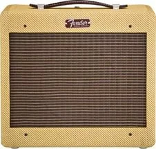 FENDER 57 Custom Champ - компактный полностью ламповый комбоусилитель ручной сборки от знаменитого американского гитарного бренда, современное переиздание классической модели 50-х годов. Модель выдаёт великолепный узнаваемый звук с потрясающей динамикой, эффектно и стильно выглядит в бежевом «твидовом» винтажном корпусе с хромированной панелью управления. Усилитель имеет компактные габариты и небольшой вес. Мощность этой портативной модели – 5 Ватт. Представленный комбоусилитель – одноканальный. В конструкции используется одна лампа предусилителя 12AY7, одна лампа усилителя мощности 6V6 и одна лампа выпрямителя 5Y3. Внутри стильного корпуса ретро-дизайна расположен один 8-дюймовый динамик Weber® Special Design. Возможности коммутации предусматривают два инструментальных входа 1/4 джек. Вес комбоусилителя – 6,8 кг, а габариты – 31,8 см х 19,3 см х 34,3 см, что позволяет легко транспортировать его и переносить с места на место. Сверху расположена надёжная ручка из износостойкой натуральной кожи, идеально дополняющая винтажный внешний вид FENDER 57 Custom Champ. Логотип спереди усилителя также воспроизводит использовавшийся на классических моделях конца 1950-х. В комплекте поставляется фирменный чехол.