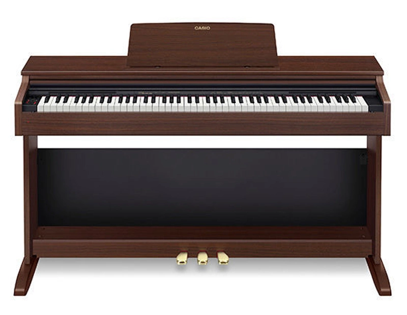 CASIO CELVIANO AP-270 – цифровое пианино кабинетного типа, оснащённое крышкой клавиатуры и тремя педалями.