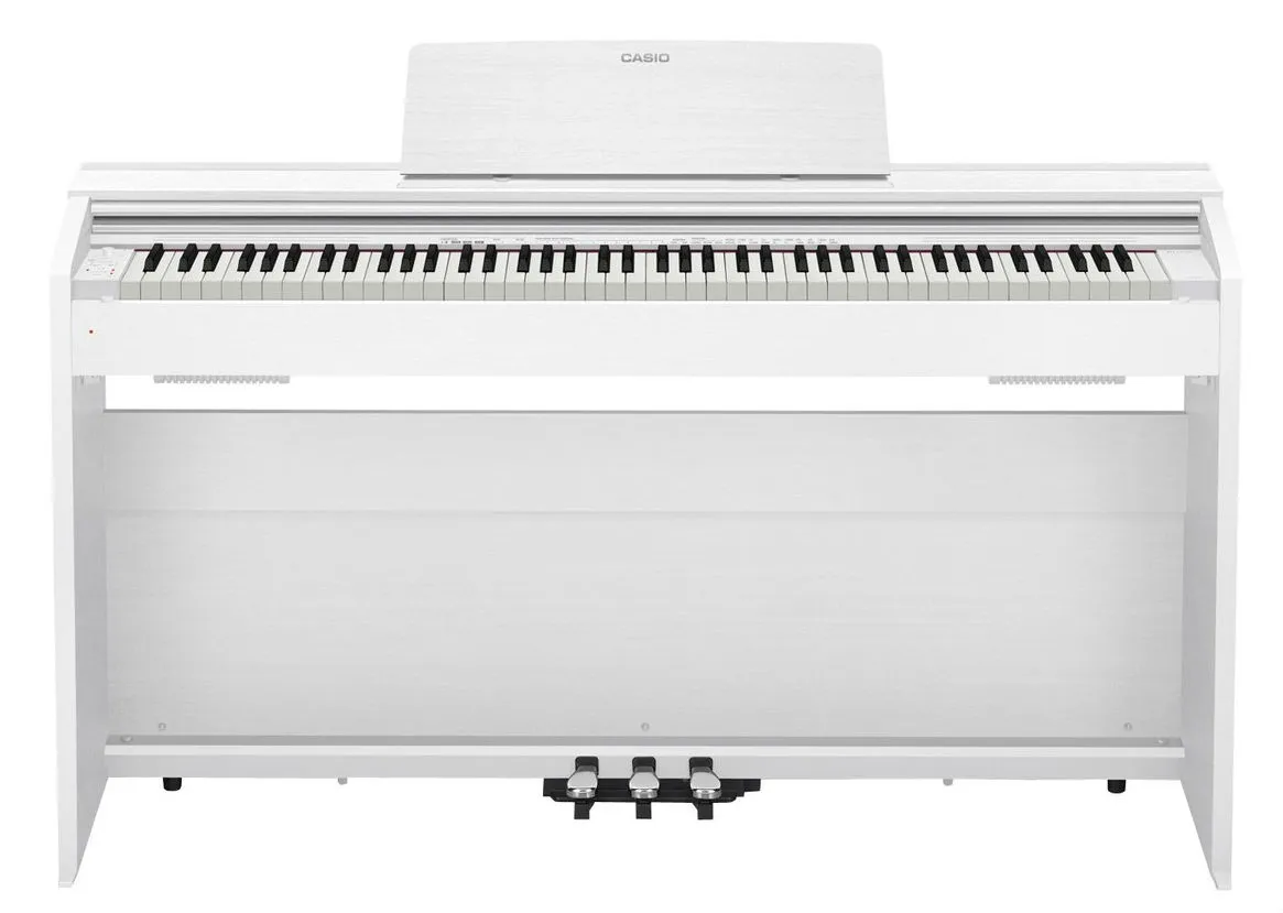 CASIO Privia PX-870WE – великолепное цифровое пианино, флагманская модель знаменитой линейки Privia, которая позволяет получить ощущения при игре, как будто Вы сидите за настоящим акустическим роялем. Это цифровое пианино отличается чрезвычайно натуральным звучанием и обладает расширенным функционалом. Клавиатура Privia PX-870 с 88 фортепианными клавишами отличается точностью передачи и очень естественными ощущениями при игре благодаря трём уровням чувствительности. Клавиши Tri-Sensor II Scaled Hammer Action с настраиваемой чувствительностью позволяют добиться потрясающей экспрессии. Красивое, очень естественное звучание достигается благодаря передовой технологии AiR Sound Source, которая позволяет имитировать звучание инструмента полностью, а не только струн рояля. Доступно 19 тембров различных инструментов, которые можно накладывать друг на друга. 256-нотная полифония гарантирует, что даже самые сложные произведения будут звучать совершенно естественно. Пианино Privia PX-870 оснащено мощной встроенной активной акустической системой мощностью 40 Ватт с 4 динамиками, которая обеспечивает оптимальное звучание, чистое и чёткое на всём частотном диапазоне, при любом уровне громкости. Встроенная музыкальная библиотека включает 60 композиций, доступно также 10 свободных слотов для записи песен по своему выбору. Собственную игру можно записывать с помощью встроенного MIDI рекордера или записать на подключаемый по USB накопитель. К разъему USB можно также подключить компьютер или мобильные устройства. Пианино идеально подходит для обучения музыке, его удобно использовать дома, в учебном классе или другом месте как для самостоятельных занятий, так и для работы с преподавателем. Можно подключить две пары наушников, чтобы заниматься, не мешая окружающим. Режим Duet позволяет использовать инструмент ученику и учителю одновременно. Модель имеет стильный современный дизайн, представлена в элегантном белом цвете.
