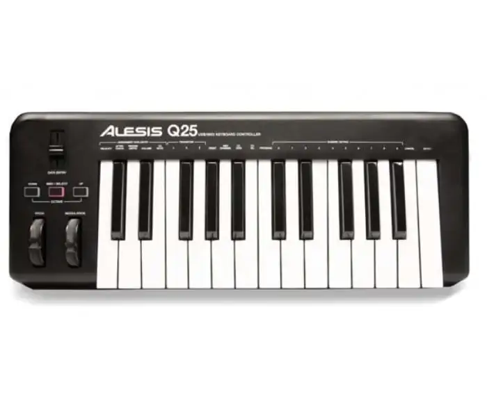 Q25 оснащен программным обеспечением Ableton Live Lite, Alesis Edition для немедленного исполнения, записи и секвенсирования музыкального сигнала. Контроллер Q25 также представляет собой превосходный выбор для управления устройствами MIDI. Его компактный размер и портативность идеально соответствуют для монтажа в уже существующие установки и очень удобны в дороге. Расположите контроллер Q25 над установленной рабочей станцией и используйте его для расширения диапазона настроек звука и исполнения. Контроллер также отправляет сообщения о смене программы для изменения патчей, программ и т.п.