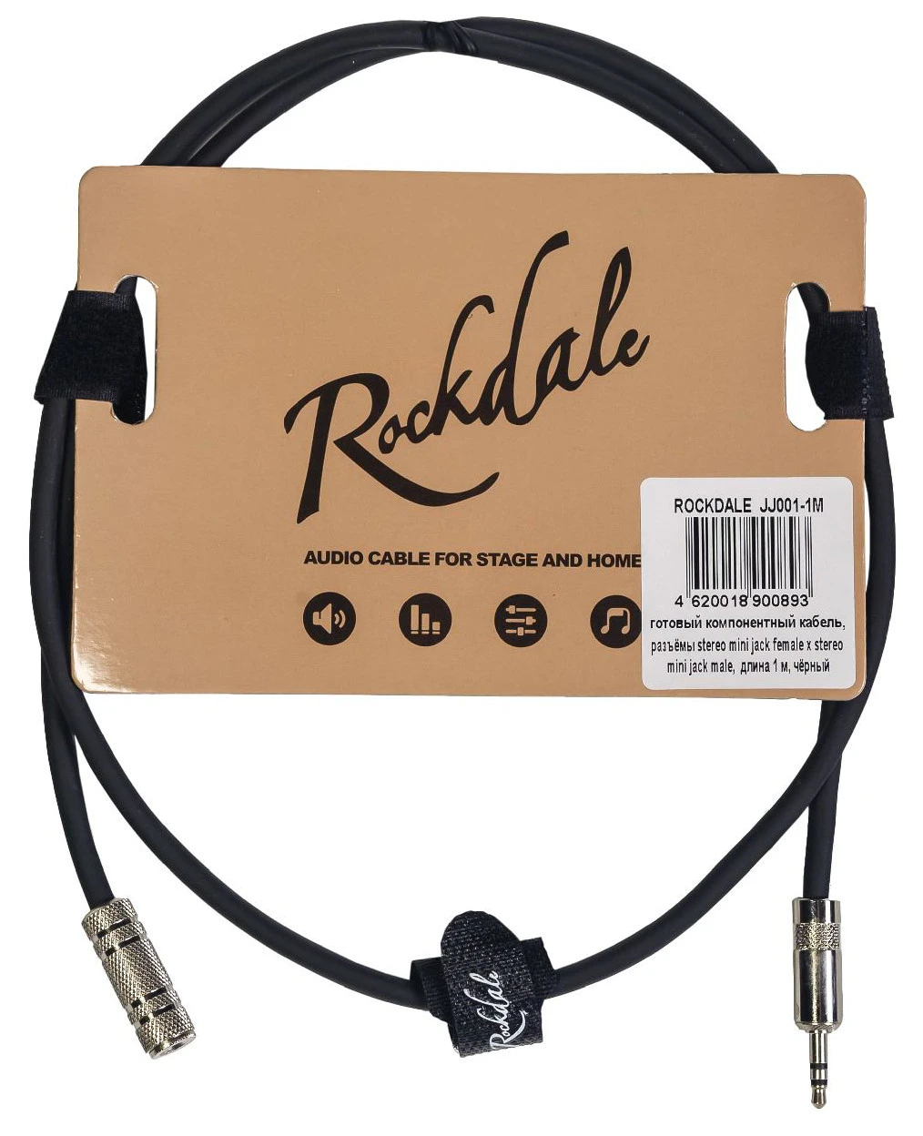 ROCKDALE JJ001-1M удлинитель для наушников, длина 1 м (разъёмы stereo mini jack female x stereo mini jack male)