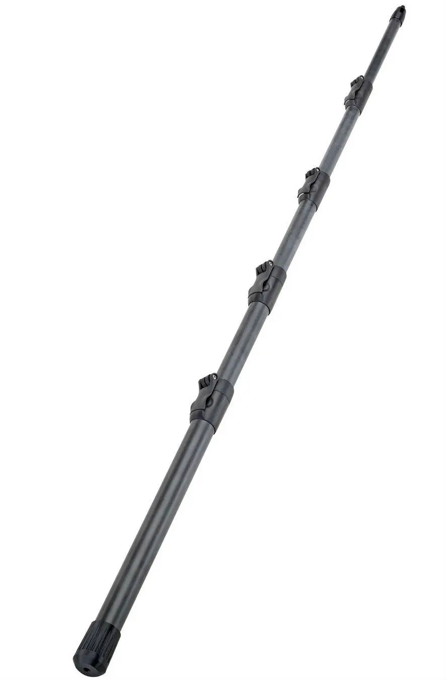 Этот держатель профессионального уровня сделан из карбона и отличается чрезвычайно высокой прочностью при минимальном весе. Удочка имеет складывающуюся телескопическую конструкцию и состоит из 5 секций. Она оснащена четырьмя эргономичными зажимами с инновационной системой защелкивания. Длину держателя можно отрегулировать от 80 см до 2 м 82,5 см. Используемые коннекторы имеют присоединительную резьбу 3/8\". Еще одна особенность данной модели – это удобство размещения кабелей во внутренней полости.