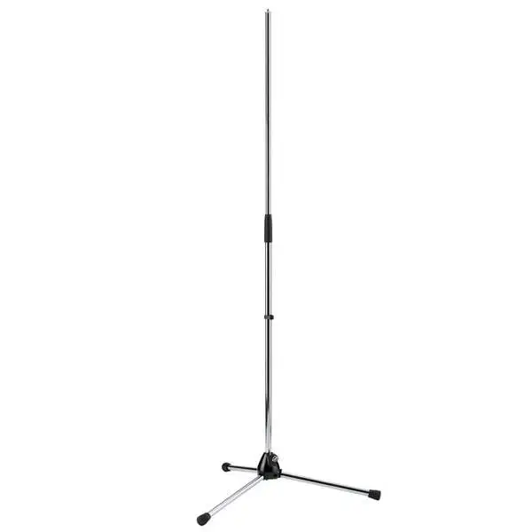 K&M 20130-300-02 – классическая прямая микрофонная стойка из серии Topline от компании König & Meyer, известного производителя аксессуаров для музыкальных инструментов и оборудования из Германии. Представленная модель устанавливается на трёх прочных раздвижных ножках со специальными противоскользящими наконечниками. Она надёжно стоит даже не на идеально ровной поверхности. Конструкция стойки – телескопическая, включает два стержня, которые входят один в другой. Крепления - стандартные винты с резьбой 3/8". Улучшенная телескопическая конструкция обеспечивает плавную регулировку высоты и надёжное закрепление трубок стойки. Высота легко регулируется от 900 мм до 1605 мм. Стойка выполнена из прочной стали, имеет вес 2,4 кг. Модель элегантно выглядит с блестящим хромированным покрытием и контрастной черной фурнитурой. Стойка легко складывается в компактную конструкцию для хранения и перевозки.