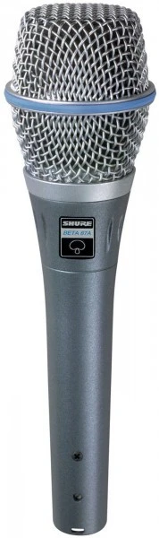 Beta 87 — это лучший конденсаторный вокальный микрофон, способный передавать все богатство звука без его внеосевой окраски и имеющий исключительно пологую частотную характеристику. Микрофон весьма устойчив к шумам и заслужил благодарность многих известных исполнителей и звукорежиссеров. Beta 87 имеет следующие характеристики: частотный диапазон 50 Гц — 18 кГц, характеристика направленности — однонаправленная суперкардиоидная, сопротивление 150 Ом, уровень выходного сигнала -74 дБ (0,2 мВ).
