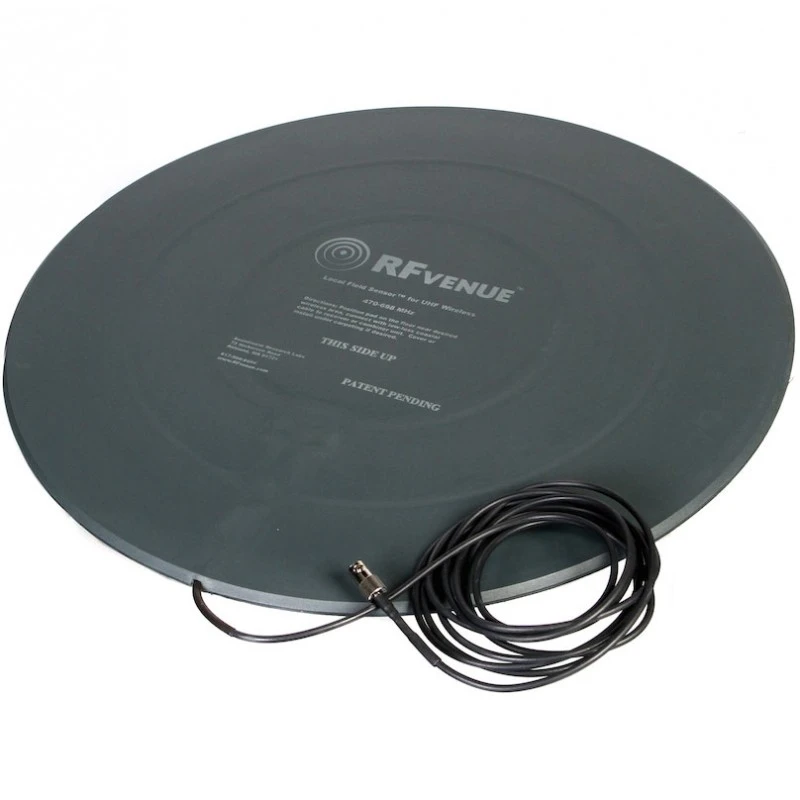 RF VENUE RFV-RFS – напольная круговая антенна близкого поля, предназначенная для использования с беспроводными радиосистемами. Это компактная низкопрофильная антенна, которая устанавливается на полу, может также размещаться под сценой. Модель особенно эффективна в случаях, когда в помещении одновременно используется несколько беспроводных микрофонных систем, а также когда доступный диапазон радиочастот ограничен. RF VENUE RFV-RFS работает на частотах от 470 до 698 МГц. Антенна заключена в прочный тонкий корпус из поливинилхлорида толщиной 7 мм. Диаметр антенны – 48,3 см, вес – 1,4 кг. Её оптимально размещать под деревянной сценой, вне сцены, под ковром или в любом другом месте, которое позволяет добиться максимального показателя сигнал/шум. Возможное расстояние передачи сигнала зависит от мощности передатчика, используемого типа кабеля и его длины, а также наличия экранирующих препятствий. Стандартный диапазон – до 100 футов при 10 мВ и несколько сотен футов при 30 мВ. Для подключения используется стандартный разъем BNC.