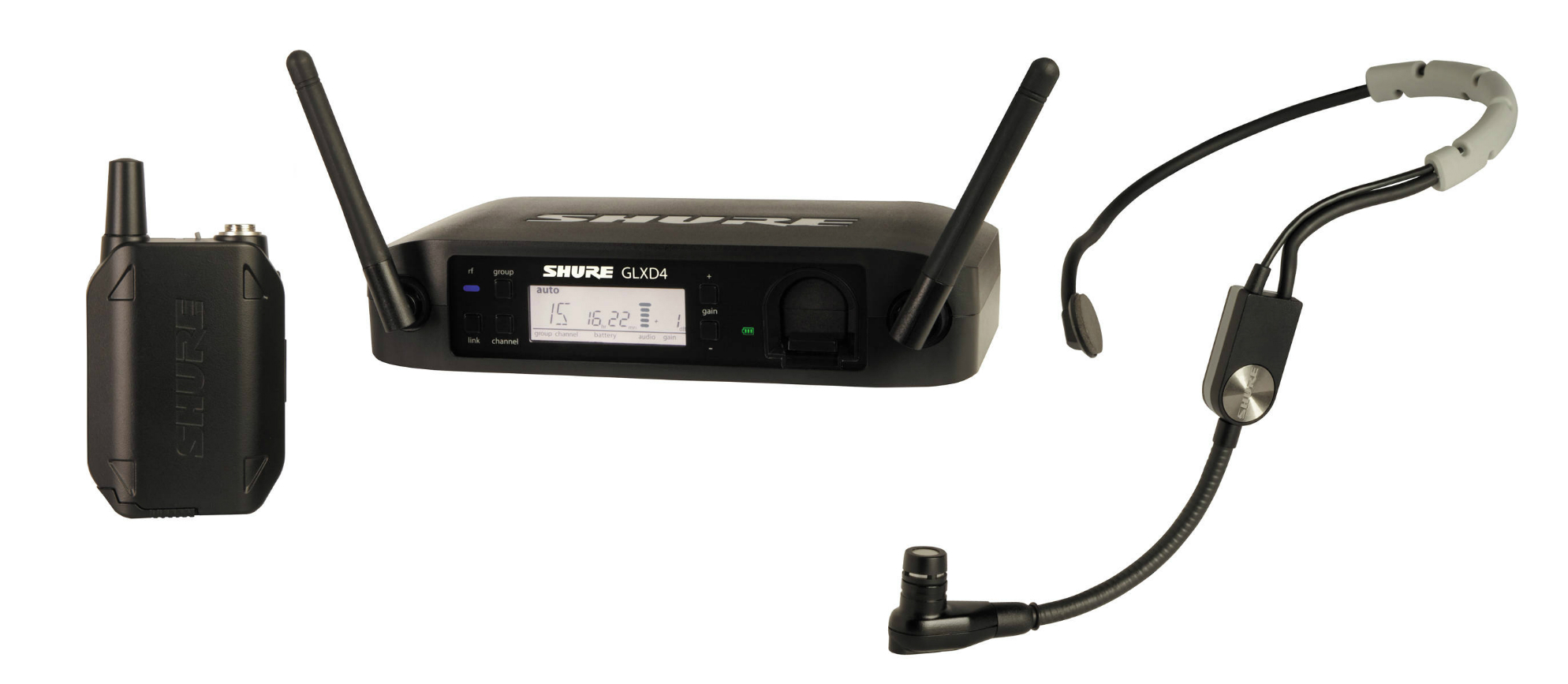Лидер производитель современной звукозаписывающей и передающей техники SHURE представляет радиосистему GLXD14E/SM35 с головным микрофоном и поясным передатчиком. Эта уникальная портативная система благодаря аккумуляторам может использоваться беспрерывно на протяжении 16 часов, для создания оболочки использовались металл и пластик. Высокие показатели производительности, малая потеря сигнала и четкий звук позволяют считать данную радиосистему одной из самых удачных моделей марки.
