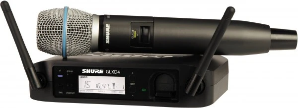 Вокальная радиосистема от профессионального производителя звукового оборудования Shure. Предназначена для работы на частотах 2,4 ГГц. Включает в себя ручной передатчик GLXD2/B87A Z2 (основа передатчика – сочетание динамического капсюля микрофона типа BETA87A и беспроводного приемника GLXD4 Z). Передатчик рекомендован при использовании на живых выступлениях, а также для записи вокала. Функционирует на базе современной технологии автоматизированной системы под названием LINKFREQ.