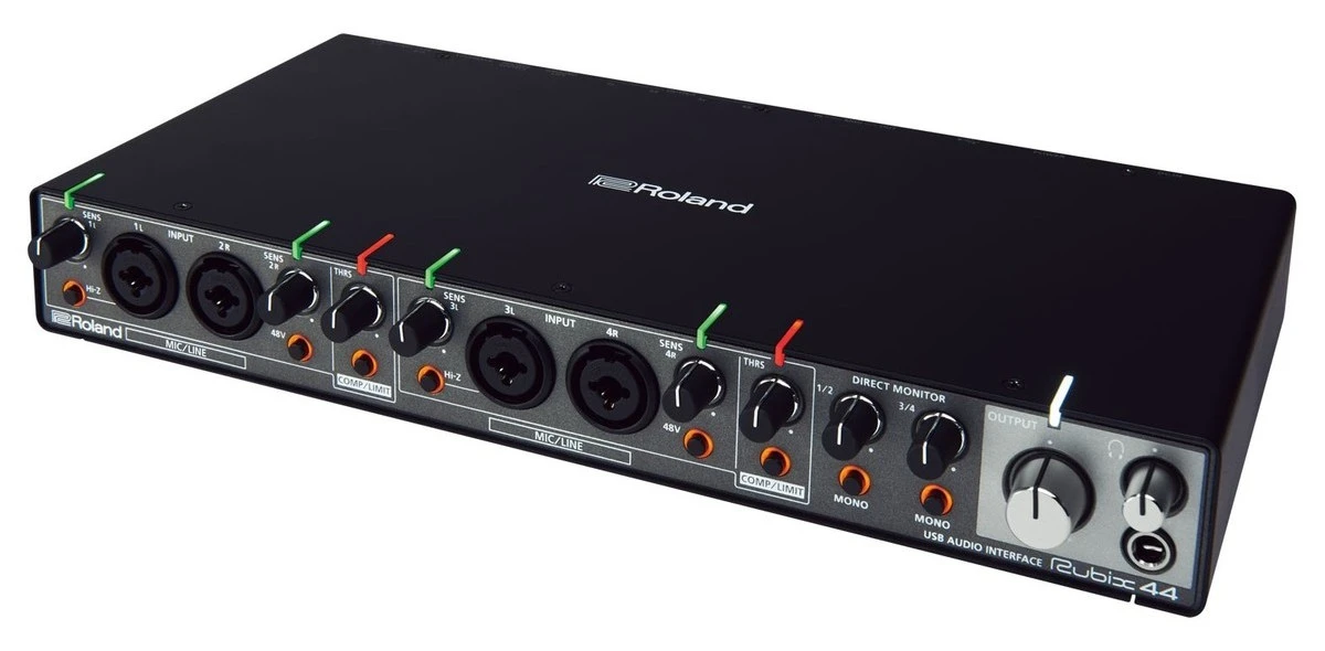 Roland Rubix44 - это внешний аудиоинтерфейс, имеющий 4 входных и 4 выходных канала, USB порт. Устройство совместимо с Mac и iOS-устройствами (iPad), PC. Аудиоинтерфейс способен работать с высокой частотой дискретизации - 24 бит/192 кГц. Особенностью этой модели является по-настоящему студийное качество звучания и звукозаписи, предельно низкая задержка, высокое качество сборки и компактные размеры. Входы интерфейса комбинированные XLR-1/4", выходы - TRS. Есть независимый выход на наушники, стандартный MIDI вход/выход