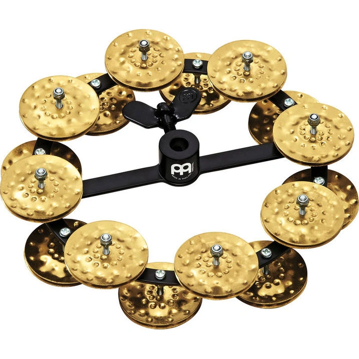 MEINL HTHH2B-BK - тамбурин профессионального уровня из линейки Headliner® от известного немецкого производителя Roland Meinl Percussion, предназначенный для установки на стойку хай-хета. Модель отличается износостойкостью, способна выдерживать сильные удары палочками барабанщика и рассчитана на продолжительный срок использования. Она отлично подходит для использования на концертах и в турах. Более высокая прочность по сравнению с другими аналогичными тамбуринами достигается благодаря особой многослойной конструкции из отдельных частей, разработанной Meinl. Тамбурин HTHH2BK выполнен из высокопрочного ABS пластика, имеет круглую форму. Диаметр - 5 дюймов (12,7 сантиметров). По кругу расположено 16 пар джинглов из латуни. Звук тамбурина – чистый, звонкий, громкий. Продуманное крепление позволяет легко и быстро устанавливать, регулировать и снимать тамбурин, независимо от тарелок и других элементов барабанной установки. Для того, чтобы играть рукой, крепление легко снимается.