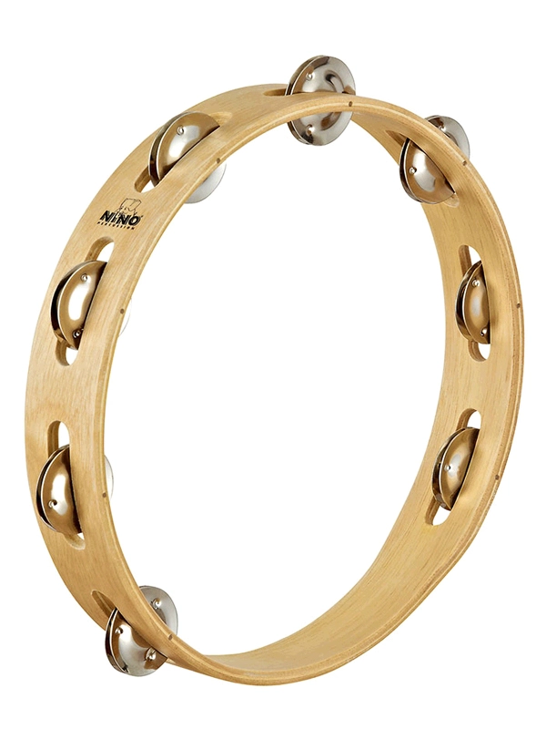 Деревянный тамбурин Nino14 имеет крепкий корпус и с хороший искрящий звук.
