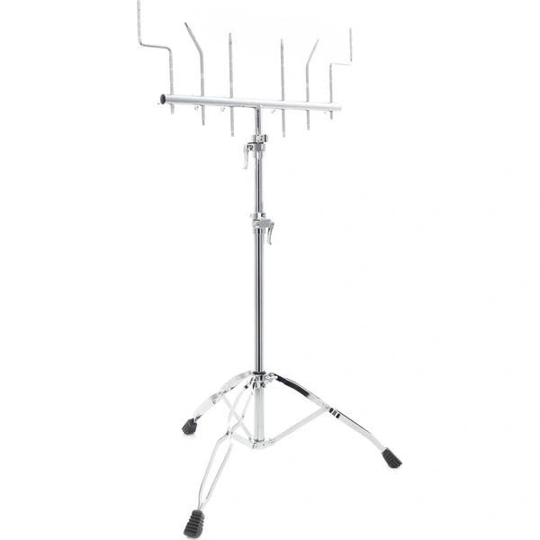 MEINL TMPS - удобная и практичная стойка для перкуссии от известного производителя Roland Meinl Percussion. Благодаря наличию нескольких держателей разной формы стойка TMPS универсальна, на нее можно устанавливать различные перкуссионные инструменты или барабаны. В конструкции шесть держателей: два прямых, два изогнутых и два Z-образных. Стойка устанавливается на трех прочных двойных ножках с противоскользящими наконечниками. Благодаря эргономичной конструкции из двух вставляющихся друг в друга трубок высота стойки плавно регулируется. Модель устойчиво располагается даже не на идеально ровной поверхности. Стойка легко складывается в компактную конструкцию для хранения и транспортировки. Модель элегантно выглядит, выполнена из прочной стали с блестящим хромированным покрытием.