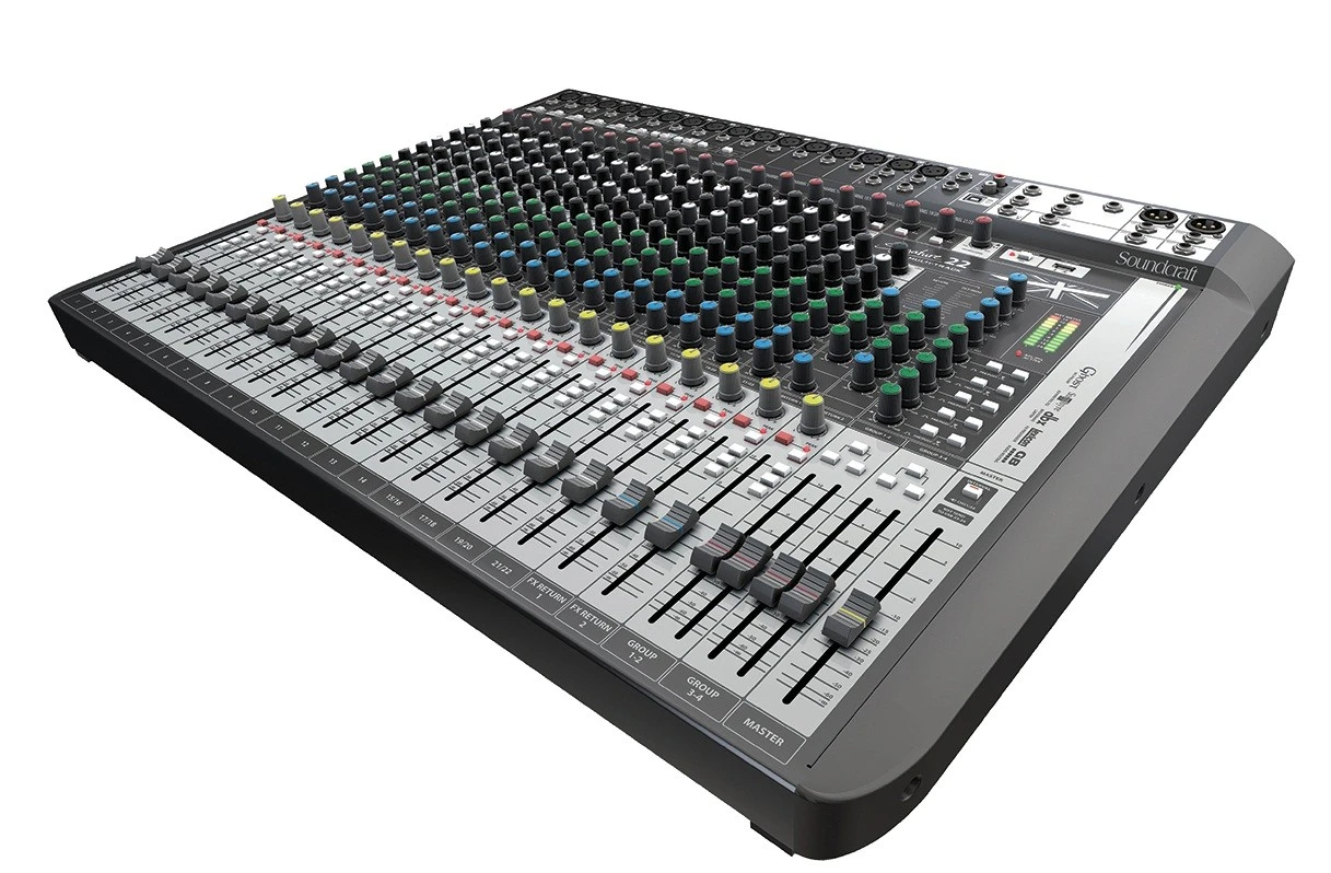 На восьми входных каналах микшера установлены фирменные лимитеры dbx (High-ratio Compressors). В дополнение ко всему микшер оснащен USB-интерфейсом для воспроизведения и записи музыки и концертных выступлений. Для подключения конденсаторных микрофонов микшер оснащен отключаемой системой фантомного питания (48 V). Настройка громкости каналов осуществляется 100-мм. фейдерами с плавным, мягким ходом. Корпус микшера металлический, что гарантирует его сохранность даже в условиях активной туровой деятельности. Блок питания микшера встроенный. Микшер с процессором эффектов Soundcraft Signature 22MTK станет прекрасным приобретением для выступлений музыкальных групп, презентаций в торговых центрах и клубах, озвучивания выступлений передвижных театральных групп и прочих сфер, где важным частью является широкие функциональные возможности.