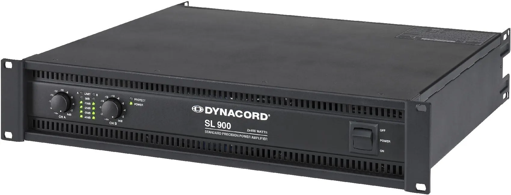 Dynacord SL 900 – мощный и надёжный высокопроизводительный усилитель мощности от немецкого производителя. Это многофункциональная модель профессионального класса, гарантирующая великолепное звучание. Она подходит как для использования в фиксированных инсталляциях в клубах и на концертных площадках, так и для мобильного применения. Усилитель может быть использован в звуковых системах D-Lite, Forum, VariLine или Cobra. При этом цена модели достаточно демократична. Мощность Dynacord SL 900 – 2 х 450 Ватт. В конструкции используются выходные схемы класса AB. Усилитель оснащён надёжной многоуровневой системой защиты от перегрузок, перегрева и короткого замыкания, а также динамическими лимитерами. Возможность корректировки частотных характеристик с помощью запатентованного Dynacord режекторного фильтра нижних частот позволяет оптимизировать работу акустических систем и получить звук прекрасного качества. Частотный диапазон усилителя – от 10 Гц до 40 кГц. Вес модели – 12,6 кг. Усилитель может быть установлен в рэк.